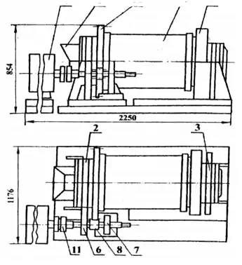 У 1987 р. на дослідному виробництві інституту Механобрчермет випробовувався експериментальний зразок млина МІП діаметром барабана 500 і завдовжки 650 мм (рис.). Випробування на магнетитових кварцитах ПівнГЗК крупністю 16 мм проводилися у відкритому циклі. При зміні продуктивності по вхідній руді в межах від 0,2 до 0,1 т/год, відносної частоти обертання барабана від 1,75 до 2,0 від критичної, масової частки твердого в млині від 16,0 до 65,8 в подрібненому продукті отриманий приріст класу мінус 0,044 мм від 20,0 до 62,5 %, питомі енерговитрати по готовому класу становили 27,8—93,0 кВт•год/т. Отримані дані свідчать про значний (до 62,5 %) приріст готового класу в подрібненому продукті, проте процес характеризується високою питомою витратою електроенергії (27,8—93,0 кВт•год/т) і великим зносом робочого органу млина. Тому експерименти показують, що подрібнення в млині МІР за рахунок дотичних зусиль у внутрішніх шарах руді — прийнятніше для стадій тонкого подрібнення. Наприклад, для доподрібнення проміжних продуктів в стадіальних схемах збагачення залізняку.