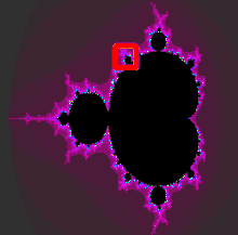 Множина Мандельброта й сама містить структури, що нагадують множину Жюліа: для будь-якого область множини Мандельброта поблизу нагадує центр множини Жюліа з параметром . Якщо сильно збільшити множину Мандельброта в граничній точці c і те ж саме зробити з множиною Жюліа для цього ж значення c і в цій самій точці, то картини будуть асимптотично прямувати одна до одної при зростанні збільшення.