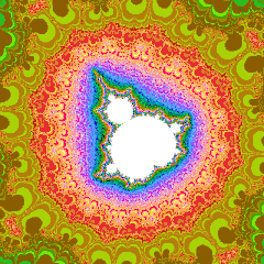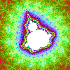 Таким чином, якщо |zn|2 ⩽ 4 за будь-якого числа ітерацій (на практиці — при всіх обчислених ітераціях), то колір точки чорний, в іншому випадку він залежить від останнього значення n, за якого |zn|2 ⩽ 4. Значення n, фактично, означає швидкість руху zn в нескінченність і може бути просто індексом у таблиці кольорів або використовуватись як параметр у більш складному алгоритмі.