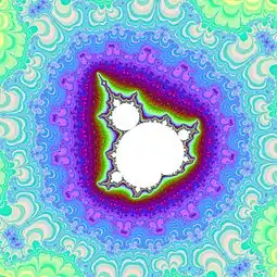 Множина Мандельброта — обмежена та зв'язна множина на комплексній площині, межа якої утворює фрактал. Множина Мандельброта це множина комплексних чисел , для яких функція не розходиться, якщо її ітерувати від значення , тобто, для якої послідовність , , і так далі, залишається обмеженою в абсолютному значенні. Названа на честь Бенуа Мандельброта, який вивчав і популяризував її.