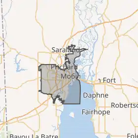 Бухта Мобіл — місце великої битви часів Громадянської війни. Будучи єдиним морським портом у штаті, місто швидко розвивалося як пункт вивозу з Бірмінгема залізної руди і сталі, а також деревини і сільськогосподарської продукції. База і тренувальний центр Берегової охорони США.