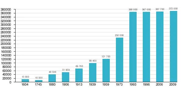 | 1604 | 15 тис. | 1913 | 69 700[4] | 1993 | 366 000[5] |
