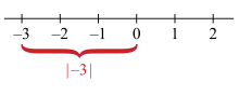 А саме, , якщо додатне, та , якщо від'ємне значення (у цьому випадку додатне), а також . Наприклад, абсолютне значення числа 3 дорівнює 3, а абсолютне значення числа також дорівнює . Абсолютне значення числа також можна розглядати як відстань від нуля.