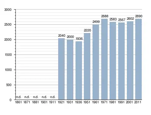 Станом на 31 грудня 2014 року в муніципалітеті офіційно проживало 167 іноземців з 22 країн, серед них 93 громадяни країн Євросоюзу та 14 громадян України.[4]