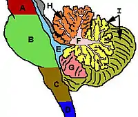 Внутрішня структура мозочка у риб відрізняється від людської. Мозочок риб не містить глибоких ядер, відсутні клітини Пуркіньє.