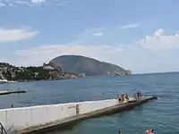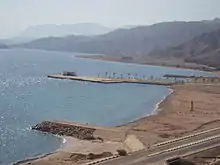 Одним кінцем примикає до берега. Може служити для розміщення причалів і перевантажувальних установок.