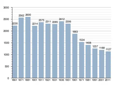 Населення — 1079 осіб (2014)[2]. Щорічний фестиваль відбувається 24 серпня. Покровитель — святий Варфоломій.