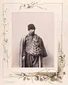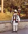Чоловічий: довга біла тунікоподібна сорочка та вузькі білі штани, широкий шкіряний пас або шерстяний пояс, висока каракулева шапка (кушме) або повстяний капелюх (пелериє). Чоловіча тунікоподібна сорочка шилася з конопляного полотна з прямими бочками вставками та ластовицями. Така сорочка коміра не мала. Чоловіки гірських районів - пастухи носили вузькі штани - ізцарь, а жителі-землероби штани широкого українського типу або ізмене. Пастухи носили також хутряний одяг без рукавів та кожухи вивернуті хутром доверху - губе, бурка. Чоловіки носили в одному вусі сережку. Заможні носили також рід шуби - покритої шерстяною тканиною - контеш.