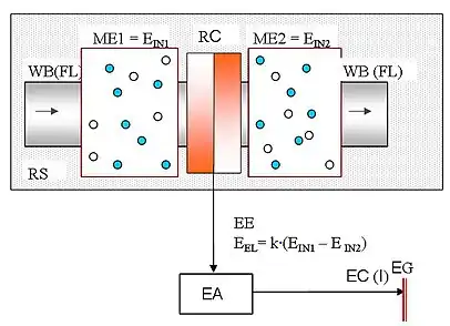 Приймач-перетворювач енергії RC є активною чутливою структурою, яка трансформує енергетичні властивості молекул, атомів, йонів, інших малих частинок робочого тіла в електричну енергію ЕE. Робоче тіло з початковою енергією молекул та атомів ME1 = EIN1 [Дж] всередині та на кордоні фаз може виконати певну роботу W [Дж] і перейти у стан з енергією ME2 = EIN2 [Дж], W = ∆E = EIN1 — EIN2,