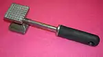 - Молоток для відбивання м'яса — предмет кухонного начиння, молоток з шипоподібною насічкою на бійчику. Застосовується для приготування відбивних котлет, біфштексів та ін. Іноді його заміняє насічка на обусі м'ясницької сокири.