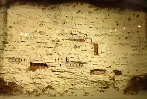 Саме приміщення монастиря, видовбане у вапняковій скелі висотою майже 40 м, розташовуються на двох ярусах, з'єднаних між собою зовні дерев'яної сходами. На нижньому ярусі знаходяться монастирський храм, чернечі келії, кухня, трапезна, церква для відспівування, склеп та господарські приміщення. Другий поверх монастиря являє собою природну скельну нішу, в східному кінці якої розташована монастирська каплиця.
