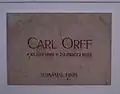 Настінна табличка над місцем поховання Карла Орфа у монастирській церкві