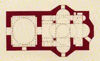 Потреба залишати деяку площу для церковного хору у соборах спонукала збільшувати кінці горизонтальної лінії та видозмінювати напівкола. Цей архітектурний тип досить часто зустрічається серед храмів Балкан. Так і у Соборі Святої Варвари знаходимо характерні риси: кутові приміщення основного храму собору вкриті на сході хрещатими склепіннями, а на заході — арками.