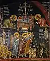 Під зводом північного приміщення зображено Воскресіння. Нижче Камінь, Привітання, Явлення Христа апостолам. Далі пояс із фігурами свідків та фігури святих Меркурія, Артемія, Нестора, Федора Стратилата та Димитрія. Під північним зводом — Поховання кустодія, плач, явління Христа на озері Тиверіада. У центрі зображено пророків.