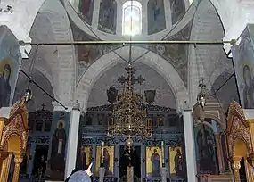 Але і монастир Каламона теж (оточений) вежами і бійницями, споруджений із квадратного тесаного каменю, і храм по середині просторий спирається на круглі склепіння. До нього примикає з правого боку інший храм круглий, надзвичайно маленький, споруджений, як кажуть, за часів апостолів, в ніші якого написана ікона Богоматері, що тримає в обіймах Спасителя Христа, за формою, і за кольором і за розмірами схожа на ікону Пресвятої Одигітрії в царственному граді. [3]