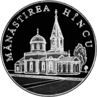 Національний банк Молдови в 2000 році випустив в обіг як платіжний засіб та в нумізматичних цілях срібну пам'ятну монету якості пруф із серїї «Монастирі Молдови» — Монастир Хинку, номіналом 50 лей.