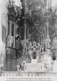 Томаш Зауха вважав, що дуже правдоподібно після фундушу для домініканців Миколи Василя Потоцького (200000 злотих польських у 1761 році) у 1764 році розпочали виготовляти новий пізньобароковий головний вівтар для костелу. Старий натомість розібрали та перевезли до домініканського костелу в містечку Золотий Потік (1775[18]).[19]