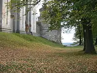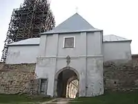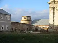 - оборонні мури з вежами, брамою (з 1702 р.), бастіонами.