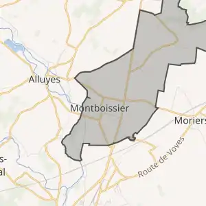 - Розташування муніципалітету Монбуасьє на мапі Франції та сусідні муніципалітети