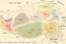 З 842 року, коли розпалася Тибетська імперія на Західнетибецьке і Центральнотибетське царства, почався період занепаду. До середини X ст. на території Тибету вже існувало 7 держав. Згодом їх збільшилося до 10-12.