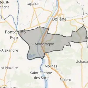 - Розташування муніципалітету Мондрагон на мапі Франції та сусідні муніципалітети