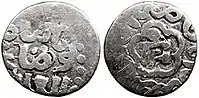 - 10) 1396 (796 р.Г.). З правого боку поля монети зображення орнаментального невеликого чотирикутника, всередині нього 4 крапки, від кутів відходять пелюстки, по сторонам «вузли щастя». На реверсі вихідні дані.