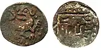 - 1) Не датований (Бл. 1363—1370). На аверсі легенда в 2 рядки, нижче рік: «Карбування в Урда[рік]» (араб. اوردو ضرب). На реверсі зображення кішки, крокуючої направо[49]