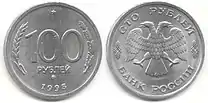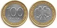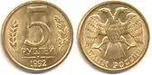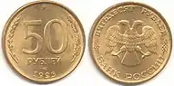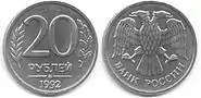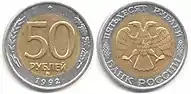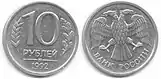 Після розпаду Радянського Союзу було утворено нову державу — Російська Федерація. До 1993 року в обігу тимчасово знаходились купюри Держбанку СРСР. У 1993 році в обіг були введені нові монети і купюри Банку Росії. В обіг були випущені такі монети: 1 і 5 рублів (карбувалися в 1992 році), 10, 20, 50 і 100 рублів (карбувалися в 1992—1993 роках). 1 і 5 рублів карбувалися зі сталі, покритої латунню. Монети карбувалися на Московському і Ленінградському (Санкт-Петербурзькому) монетних дворах. На монетах стояло позначення монетного двору (літера М або ММД означала, що монета була викарбувана на Московському монетному дворі, буква Л — на Ленінградському). 10 і 20 рублів в 1992 році карбувалися з мідно-нікелевого сплаву (мельхіору), а в 1993 році — зі сталі, покритої мельхіором. Ці монети, а також 50 і 100 рублів були марковані написами ММД або ЛМД. 50 рублів в 1992 році карбувалися з біметалу: центр монети був зроблений з алюмінієвої бронзи, ободок — з мідно-нікелевого сплаву. У 1993 році 50 рублів карбувалися в алюмінієвій бронзі. 100 рублів в 1992 році також карбувалися з біметалу: центр з мідно-нікелевого сплаву, ободок — з алюмінієвої бронзи. У 1993 році 100 рублів карбувалися з мідно-нікелевого сплаву. У 1995 році (з датою 1993 року) були випущені 50 рублів зі сталі, покритої латунню.