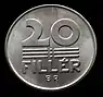20 f | 20.4 мм | 1.4 мм | 0.9 г | Рубчастий | "MAGYAR KÖZTÁRSASÁG", рік карбування, пшениця | |||||||