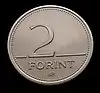 | 2 f | 18.0 мм | 1.1 мм | 0.65 г | Алюміній | Гладкий | "MAGYAR KÖZTÁRSASÁG", рік карбування | Номінал, фірмовий знак монетного двору | 1990 | 1 квітня 1990 | 30 вересня 1992 | 31 грудня 1993 | ||