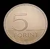 | 5 f | 17.0 мм | 1.4 мм | 0.6 г | "MAGYAR KÖZTÁRSASÁG", рік карбування, молода жінка | |||||||||