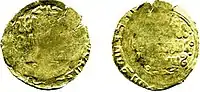 - 1) Золоті динари Худжанду (араб. خوجاند) карбувалися в період з 1240—1260 роки. На аверсі у полі подвійного лінійного кола позначалося місце карбування та ім'я багдадського халіфа Ахмада ан-Насіра, нижче збільшеним шрифтом карбувалася Шагада Ісламу: «Немає Бога крім Аллаха і Магомет — пророк його» (араб. أشهد أن لا إله إلا الله وأشهد أن محمدا رسول الله). Над колом позначався рік датою-хронограмою — абджадом. Реверс подібний до аверсу, Навколо надпис: «Динар ханський».