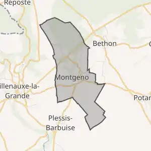 - Розташування муніципалітету Монжено на мапі Франції та сусідні муніципалітети