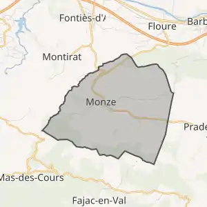 - Розташування муніципалітету Монз на мапі Франції та сусідні муніципалітети