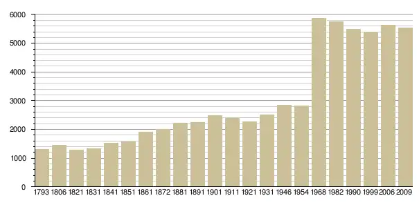 Динаміка населення (base Cassini de l'EHESS pour les nombres retenus jusque 1962[3], base Insee à partir de 1968 (population sans doubles comptes puis population municipale à partir de 2006)[4] · [5] ):