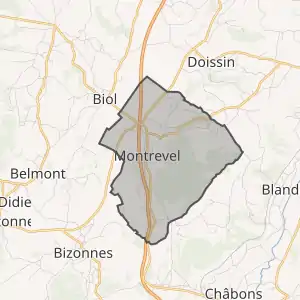 - Розташування муніципалітету Монревель на мапі Франції та сусідні муніципалітети
