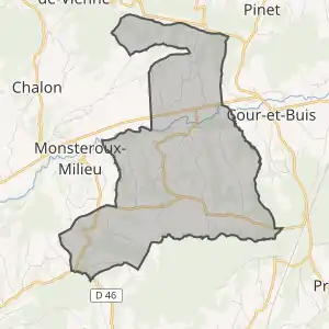 Муніципалітет розташований на відстані[2] близько 430 км на південний схід від Парижа, 38 км на південь від Ліона, 65 км на північний захід від Гренобля.
