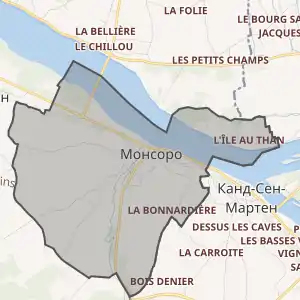 - Розташування муніципалітету Монсоро на мапі Франції та сусідні муніципалітети