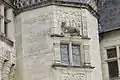 Гвинтові сходи ведуть на перший і другий поверхи замку. Вона увінчана балюстрадою, що складається з двох рядів туфових перекладин, закритих круглими шиферними плитами, і закінчується красивим пальмовою склепінням, вісім ребер якого впираються в центральну колону, яка продовжує основу сходи. Це один з чотирьох прикладів таких склепінь, відомих в Анжу, разом з замком короля Рене Доброго в Боже, будинком Барро в Анже і ратушею Сомюра.Снаружі двері в формі Коробової кривої, увінчана чотирма знаходяться один над одним вікнами, чиї опорні арки, обрамлені прикрашеними пілястрами, підкреслюють вертікальность.Украшеніе в італійському стилі включає в себе медальйони, а іноді і складні мотіви.На антаблемент над нижнім вікном зображений барельєф із зображенням голови, обрамлений путті.Над другим вікном шолом оточений ветвевідним орн том.На вимпелі напис « Chambes crie », натякає на будівельника замка. На антаблемент третього вікна представлена особливо цікава сцена: під широкою смугою, що розгортається над верхньою частиною, по обидва боки загадкового зображення стоять дві мавпи: одна з тварин піднімає за допомогою ланцюга камінь, на якому встановлена маленька обезьяна.На стрічці можна прочитати девіз де Шамба « Je le feray ». Нарешті, над високим окномпредставлен олень в стані спокою, символ полювання.