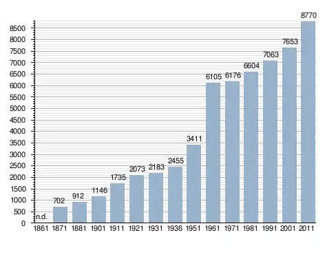 Станом на 31 грудня 2014 року в муніципалітеті офіційно проживали 1194 іноземці з 46 країн, серед них 784 громадяни країн Євросоюзу та 36 громадян України.[4]