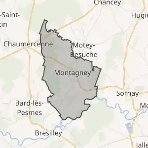 - Розташування муніципалітету Монтаньє на мапі Франції та сусідні муніципалітети