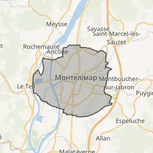 - Розташування муніципалітету Монтелімар на мапі Франції та сусідні муніципалітети