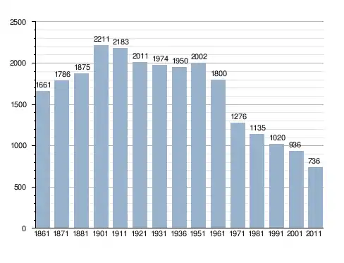 Станом на 31 грудня 2014 року в муніципалітеті офіційно проживало 28 іноземців з 6 країн, серед них 20 громадян країн Євросоюзу та 1 громадянин України.[4]