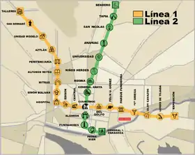 - Лінія 2 (зелена) — 13 станцій та 13,5 км.
