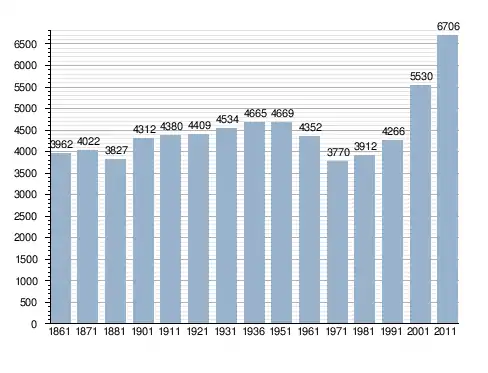Станом на 31 грудня 2014 року в муніципалітеті офіційно проживали 262 іноземці з 40 країн, серед них 143 громадяни країн Євросоюзу та 5 громадян України.[4]
