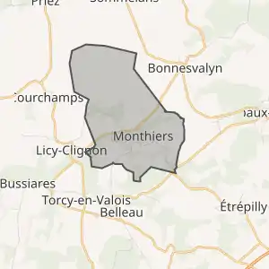 - Розташування муніципалітету Монтьє на мапі Франції та сусідні муніципалітети
