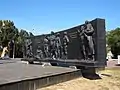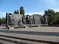 Позаду від постаменту — чавунна стела заокругленої форми (висота 3 м, довжина 12 м) з багатофігурною композицією виконаною у високому рельєфі, яку складають три послідовні і змістовно пов'язані сцени.
