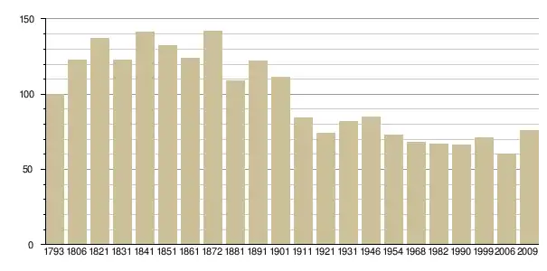 Динаміка населення (base Cassini de l'EHESS pour les nombres retenus jusque 1962[3], base Insee à partir de 1968 (population sans doubles comptes puis population municipale à partir de 2006)[4] · [5] ):