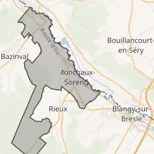 - Monchaux-Soreng sur le site de l'Insee, наведено за французькою вікіпедією