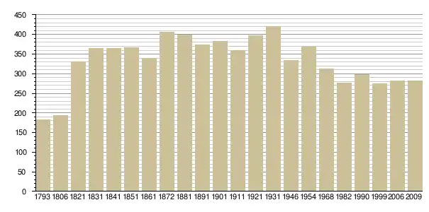 Динаміка населення (base Cassini de l'EHESS pour les nombres retenus jusque 1962[3], base Insee à partir de 1968 (population sans doubles comptes puis population municipale à partir de 2006)[4] · [5] ):